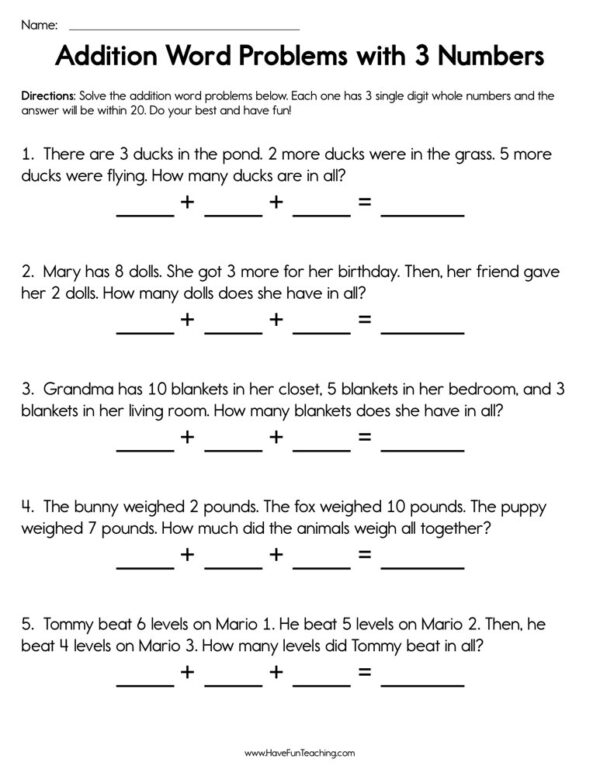 Adding Word Problems With 3 Numbers Worksheet Have Fun Teaching can be downloaded to your computer by right clicking the image. If you love this printable, do not forget to leave a comment down below.