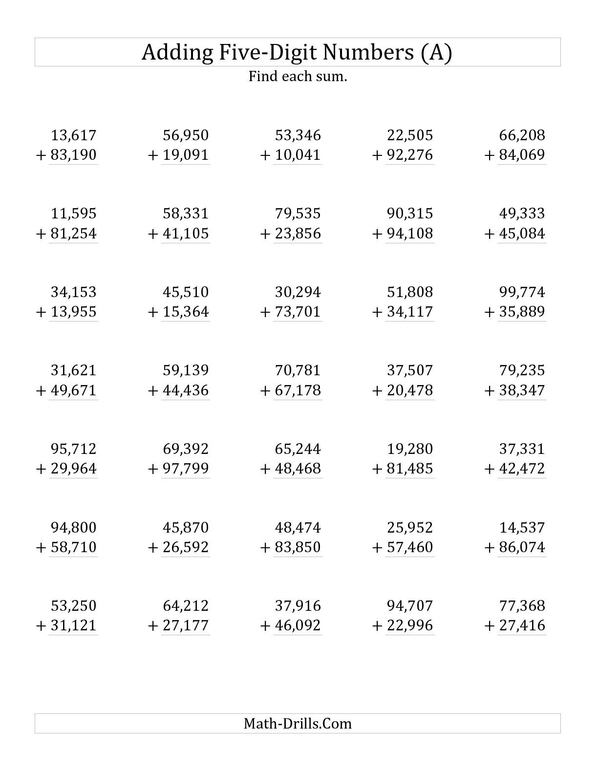 Adding 5 Digit Numbers Worksheet - Innovative supplement drills are fantastic ways to present college students to algebra principles.