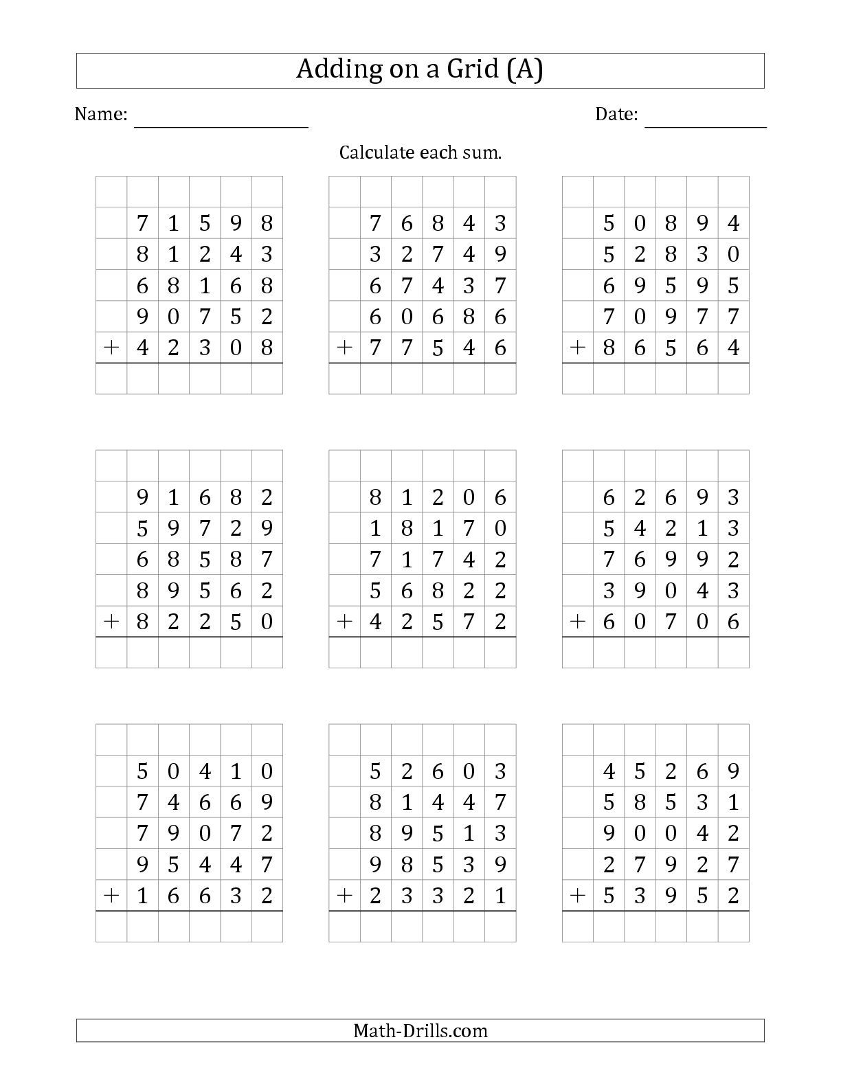 The Adding Five 5 Digit Numbers On A Grid A Math Worksheet From The is a free printable for you. This printable was uploaded at May 16, 2022 by tamble in Addition.