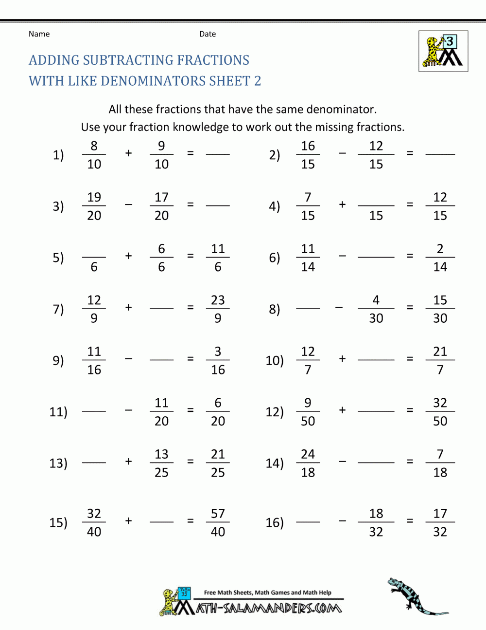 Free Fraction Worksheets Adding Subtracting Fractions can be downloaded to your computer by right clicking the image. If you love this printable, do not forget to leave a comment down below.