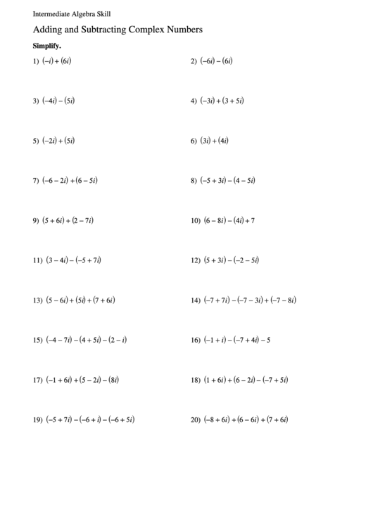 Adding And Subtracting Complex Numbers Worksheet Intermediate Algebra is a free printable for you. This printable was uploaded at October 04, 2022 by tamble in Subtraction.