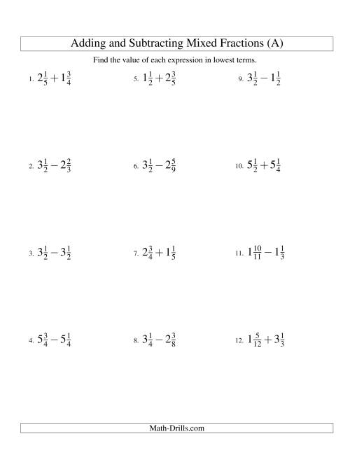 Adding And Subtracting Mixed Fractions A is a free printable for you. This printable was uploaded at May 17, 2022 by tamble in Subtraction.