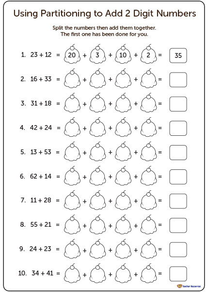 Adding Two Digit Numbers Using Partitioning Worksheets - Advanced inclusion drills are excellent approaches to present individuals to algebra concepts.