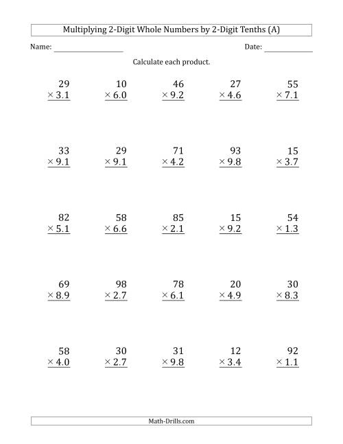 Multiplying Two Digit Whole By Two Digit Tenths A is a free printable for you. This printable was uploaded at October 04, 2022 by tamble in Multiply.