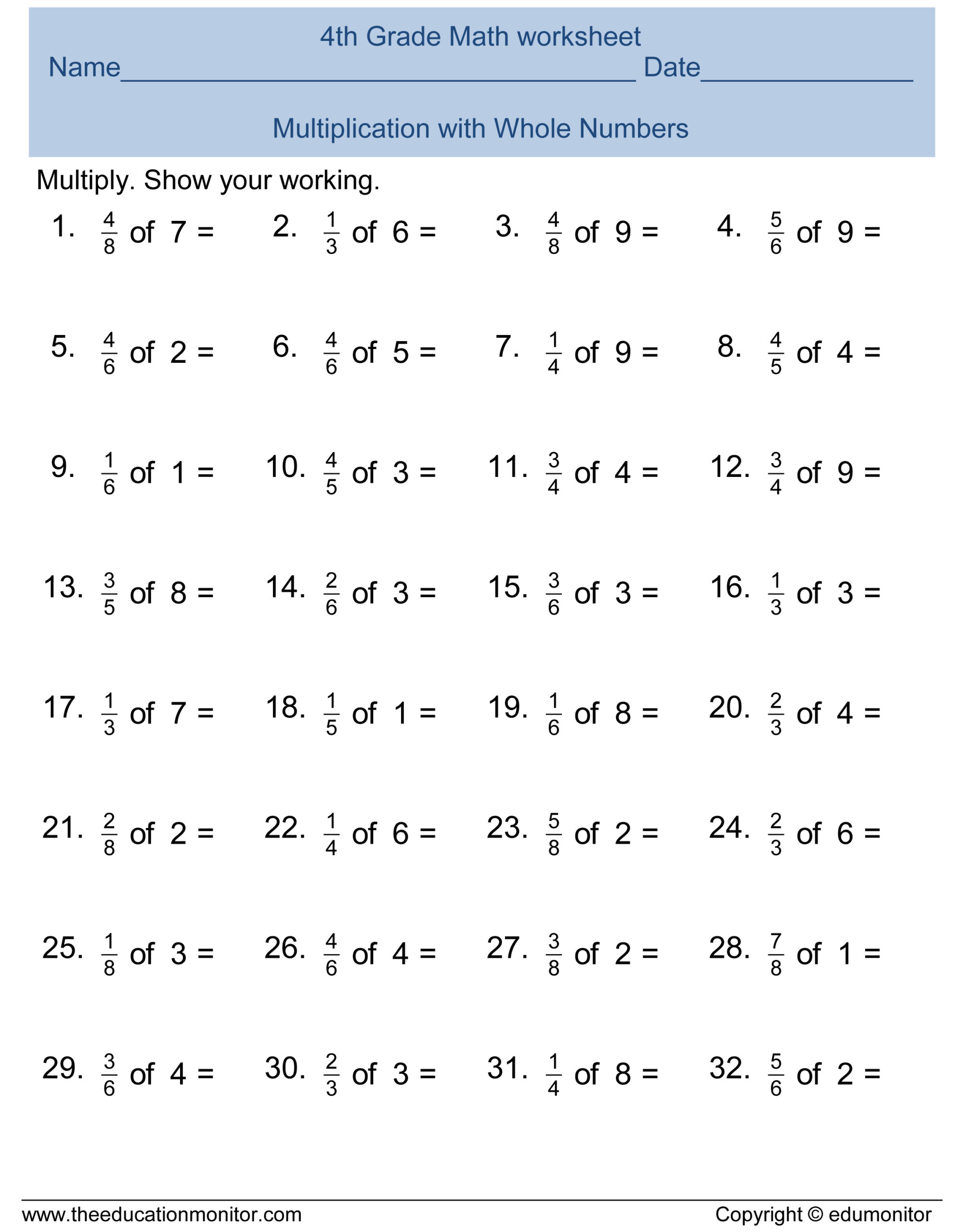 Multiplying Fractions By Whole Numbers Word Problems Worksheets 4th Grade - This multiplication worksheet concentrates on teaching pupils how you can emotionally grow total phone numbers.