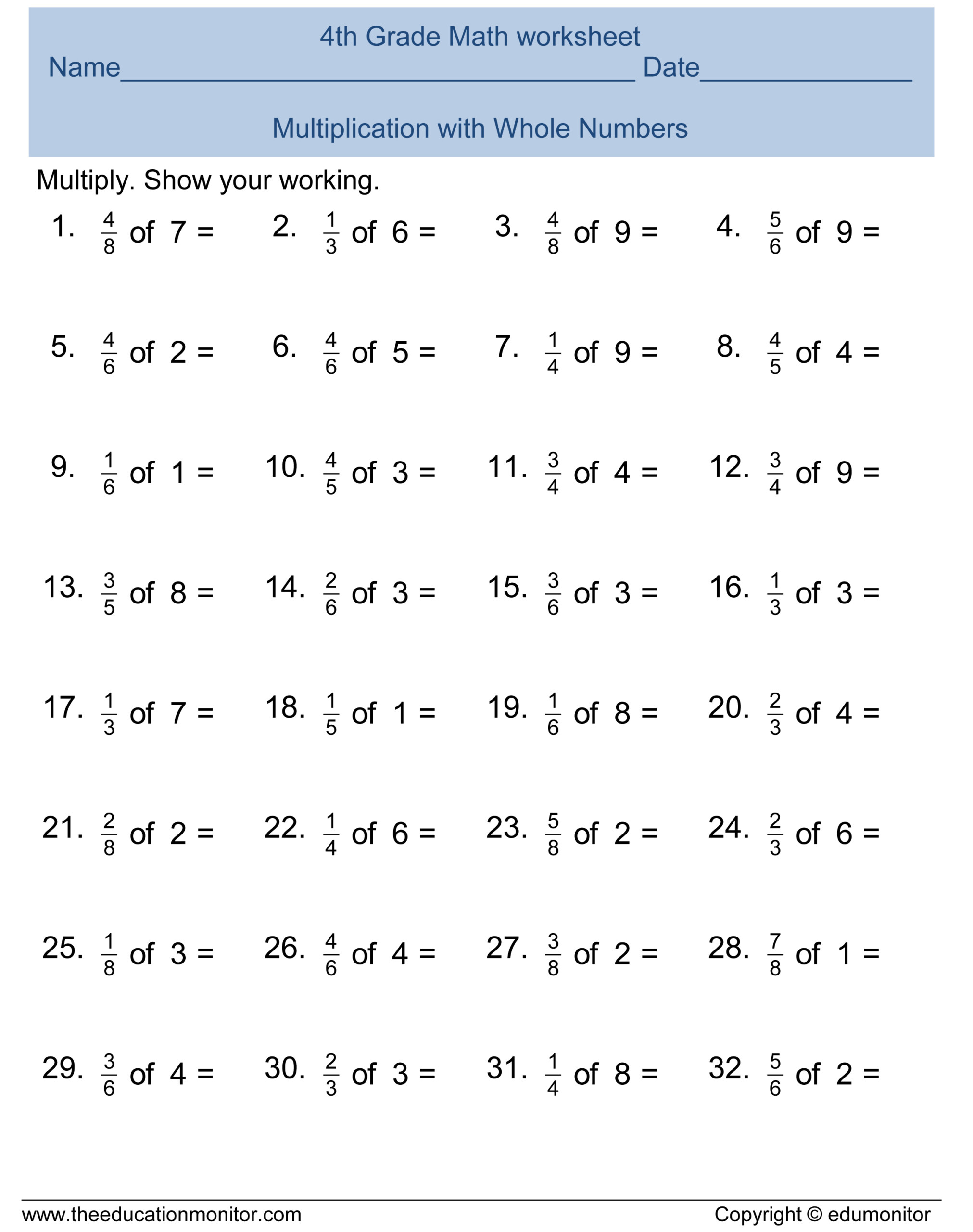 Multiplying Fractions X Whole Numbers 4th Grade Free Printable Worksheet - This multiplication worksheet concentrates on teaching individuals how to emotionally flourish total numbers.