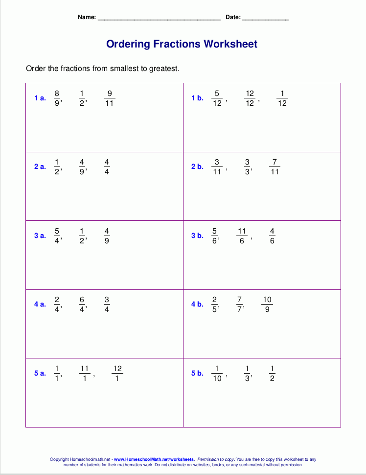 Free Worksheets For Comparing Or Ordering Fractions Fractions can be downloaded to your computer by right clicking the image. If you love this printable, do not forget to leave a comment down below.