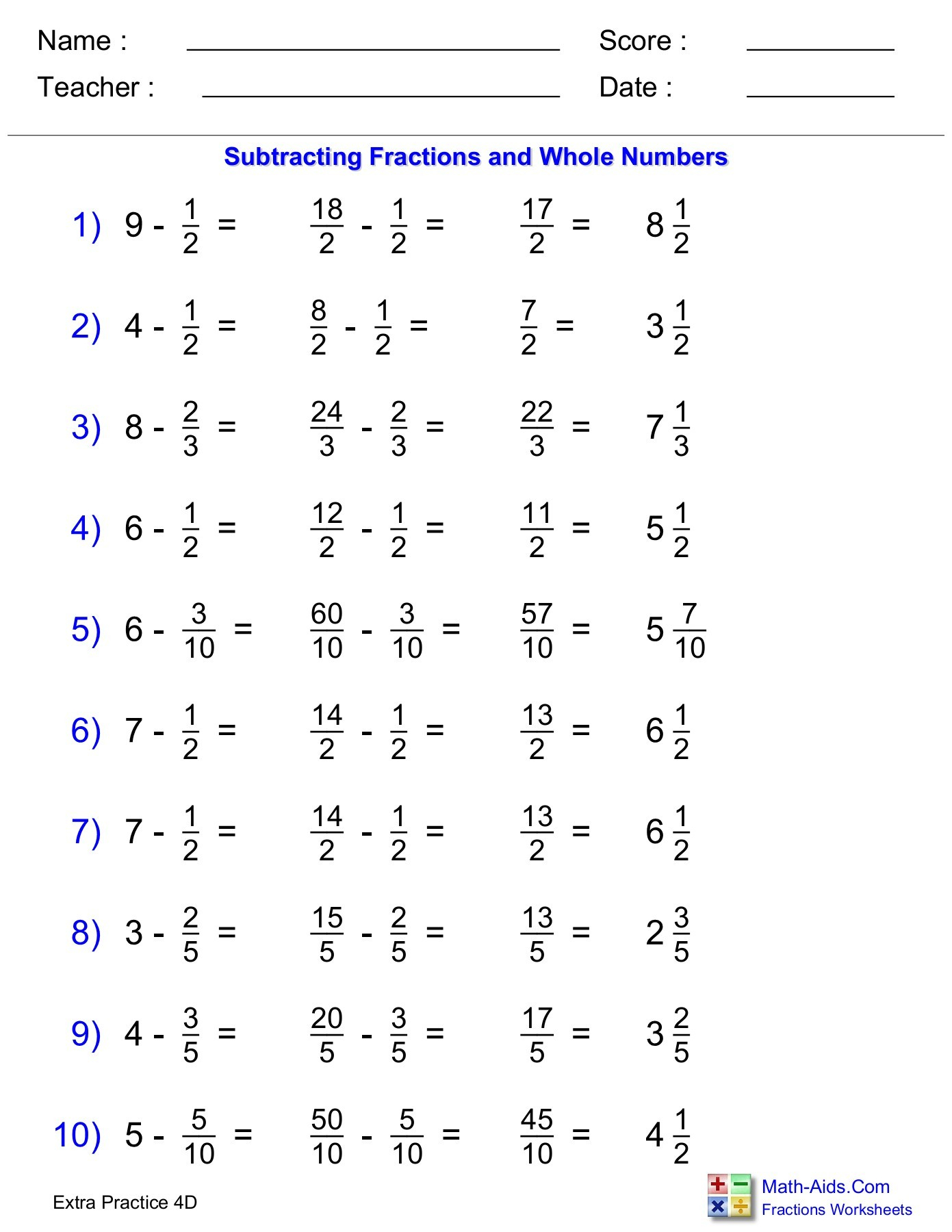 Subtracting Fraction With Whole Numbers Worksheets - A Subtraction Amounts Worksheet is actually a helpful resource for training and testing your child's subtraction facts.