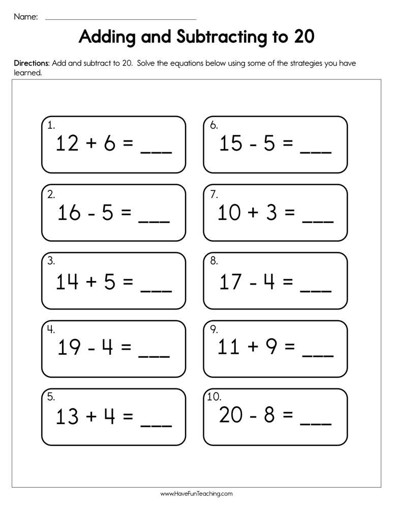 Adding And Subtracting To 20 Worksheet Have Fun Teaching can be downloaded to your computer by right clicking the image. If you love this printable, do not forget to leave a comment down below.