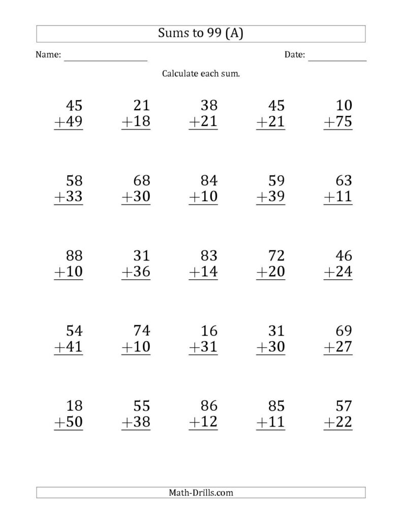 Adding 2 Digit Numbers Worksheets Year 2 – Sophisticated add-on drills are excellent methods to expose individuals to algebra ideas. These drills have options for one particular-minute, about three-minute, and several-minute drills with customized can vary of 20 or so to 100 troubles. Additionally, the drills can be found in a horizontal file format, with phone numbers from to 99. These drills can be personalized to each student’s ability level. That is the best part. Here are several additional advanced inclusion drills: