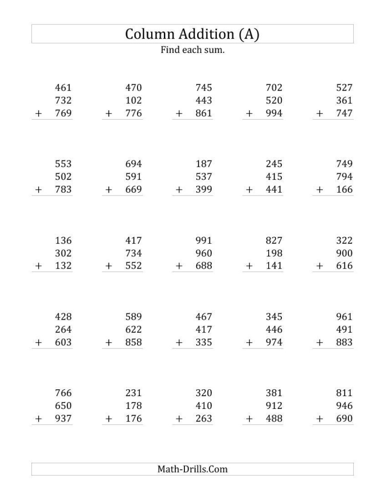 Adding 3 Sets Of Numbers Worksheets – Superior inclusion drills are fantastic methods to present college students to algebra methods. These drills have options for 1-second, 3-min, and five-moment drills with custom made varies of twenty to 100 problems. Moreover, the drills come in a side to side format, with phone numbers from to 99. These drills can be personalized to each student’s ability level. That is the best part. Here are several additional sophisticated add-on drills:
