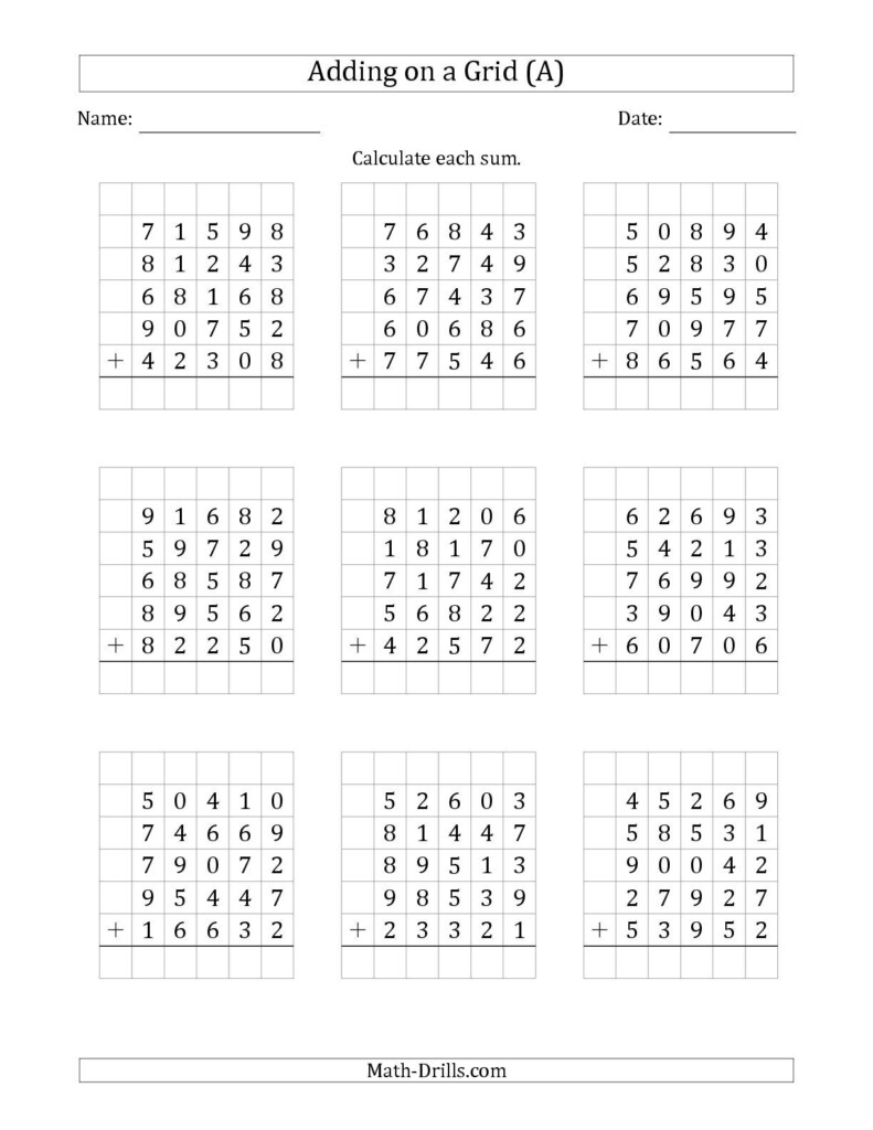Adding 5 Digit Numbers Worksheet – Sophisticated supplement drills are fantastic ways to bring in individuals to algebra principles. These drills have alternatives for 1-min, a few-minute, and five-moment drills with custom made can vary of 20 to 100 troubles. Additionally, the drills come in a horizontal structure, with figures from to 99. These drills can be personalized to each student’s ability level. That is the best part. Here are several additional sophisticated add-on drills: