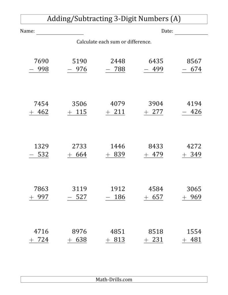 Adding And Subtracting Four Numbers Worksheets – A Subtraction Numbers Worksheet is a beneficial device for training and testing your child’s subtraction facts. Subtraction worksheets must focus on the student’s subtraction specifics and not around the connection between subtraction and addition. Here are some tips you should keep in mind if you want to use these worksheets with your child. Utilize a worksheet that assists your kids comprehend the meaning of every amount and also the technique used to execute subtraction. Adding And Subtracting Four Numbers Worksheets.