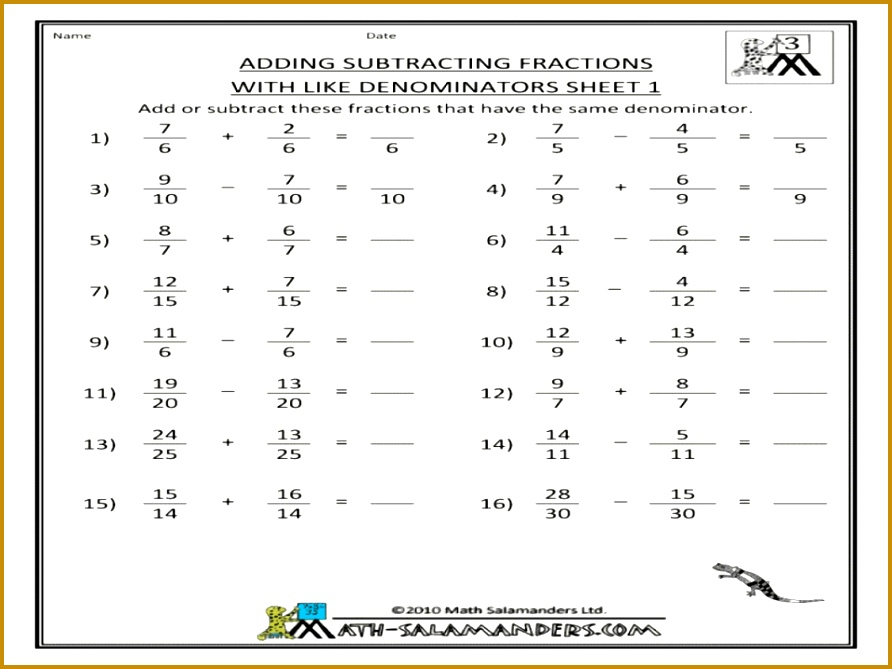 Gallery of Adding And Subtracting Mixed Numbers Worksheet Kuta