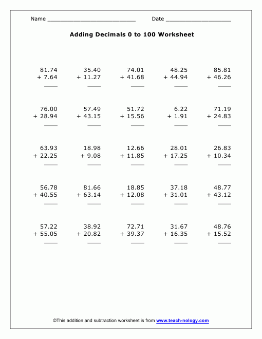 Adding Decimals And Whole Numbers Worksheet – Innovative add-on drills are perfect methods to bring in pupils to algebra ideas. These drills have alternatives for one particular-minute, 3-second, and five-min drills with custom made can vary of twenty to 100 problems. Furthermore, the drills can be found in a horizontal format, with amounts from to 99. The best part is that these drills can be personalized to each student’s ability level. Here are a few more superior supplement drills: