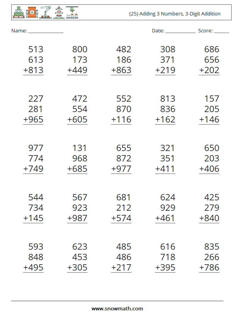 Adding Three Numbers Worksheet Pdf - Innovative addition drills are fantastic strategies to bring in individuals to algebra principles.