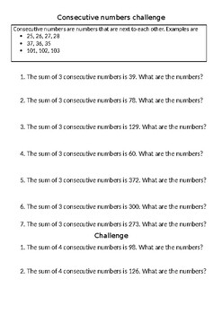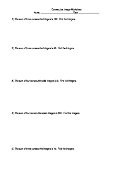 Depending on can be a helpful strategy for developing variety fact fluency. Count on a number by addingone and two. Alternatively, three. For instance, 5 in addition two equals 15, and so on. Counting on a number with the help of you might make the same result for both small and large numbers. These addition worksheets incorporate training on relying on a quantity with each fingers as well as the quantity series. Consecutive Numbers Algebra Worksheet.