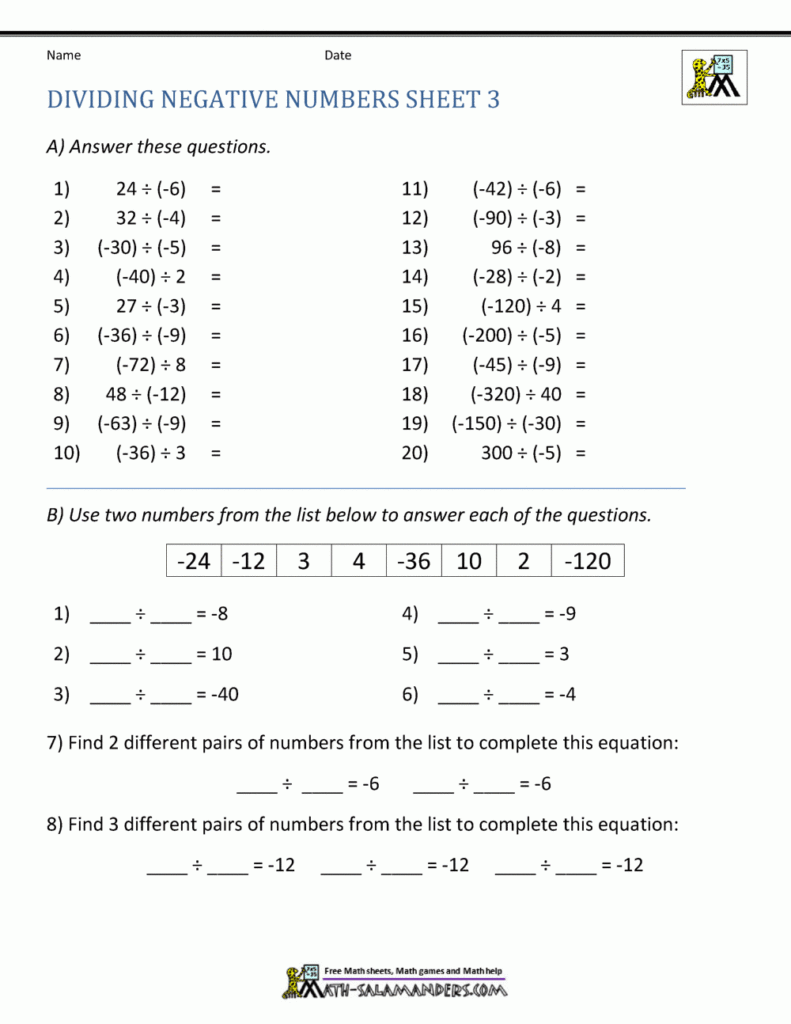 Dividing With Negative Numbers Worksheets – The Negative Numbers Worksheet is the best way to start off teaching your kids the concept of negative figures. A negative amount is any amount that is certainly under absolutely nothing. It may be extra or subtracted. The minus indicator shows the adverse quantity. Also you can write bad numbers in parentheses. Below is actually a worksheet to help you started off. This worksheet has an array of unfavorable figures from -10 to 10. Dividing With Negative Numbers Worksheets.