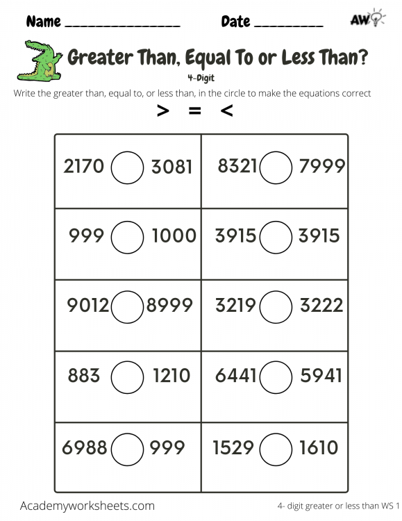 Greater Than Less Than Worksheets 4 Digit Numbers – Superior add-on drills are perfect strategies to bring in students to algebra concepts. These drills have choices for one-moment, 3-second, and 5-second drills with custom made varieties of 20 or so to hundred or so issues. Furthermore, the drills come in a horizontal file format, with numbers from to 99. The best part is that these drills can be personalized to each student’s ability level. Here are several additional advanced add-on drills: