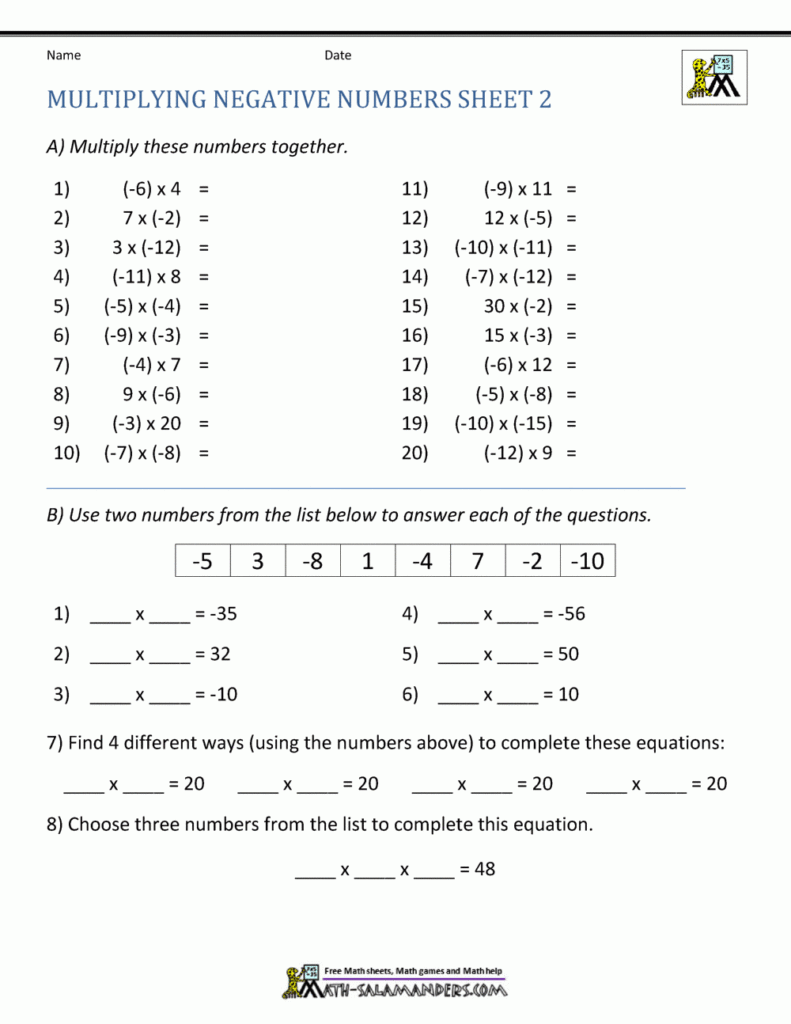 Multiply Negative Numbers Worksheet – The Bad Figures Worksheet is a great way to start off instructing your children the very idea of negative numbers. A negative number is any variety that is certainly lower than no. It may be extra or subtracted. The minus sign shows the bad number. Also you can create negative phone numbers in parentheses. Under is actually a worksheet to help you began. This worksheet has a selection of adverse figures from -10 to 10. Multiply Negative Numbers Worksheet.