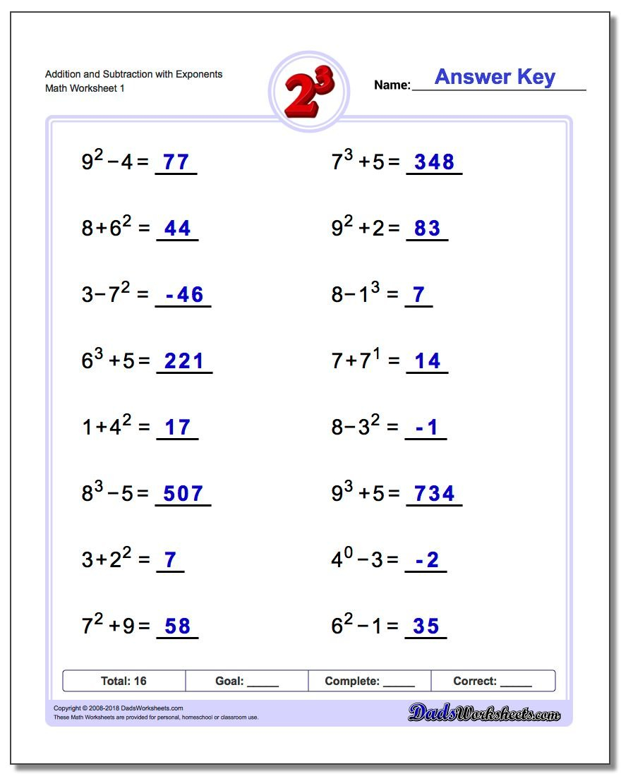 Mixed Addition And Subtraction With Exponents is a free printable for you. This printable was uploaded at July 15, 2022 by tamble in Multiply.