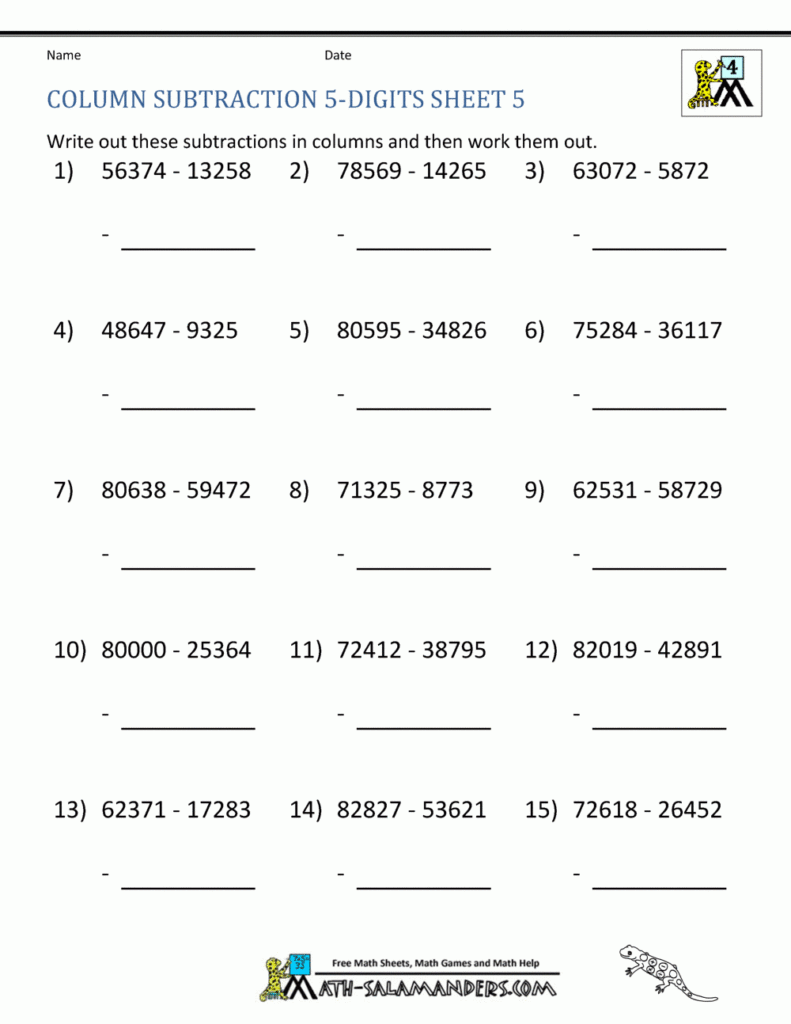 Subtracting 5 Digit Numbers Worksheets – A Subtraction Numbers Worksheet is a useful tool for training and screening your child’s subtraction information. Subtraction worksheets should pinpoint the student’s subtraction specifics and never in the connection between subtraction and addition. If you want to use these worksheets with your child, here are some tips you should keep in mind. Utilize a worksheet which helps your child comprehend the concept of every single number and the strategy used to execute subtraction. Subtracting 5 Digit Numbers Worksheets.