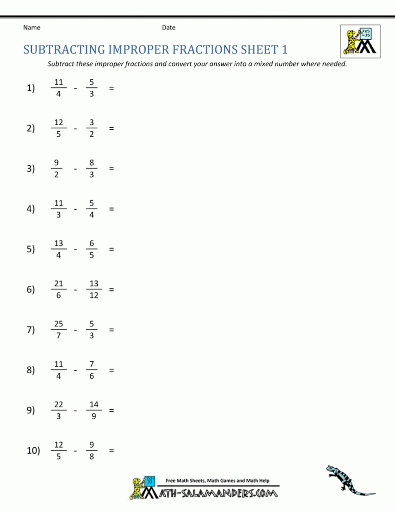 Subtracting Mixed Numbers And Improper Fractions Worksheets – A Subtraction Figures Worksheet is really a useful tool for training and testing your child’s subtraction specifics. Subtraction worksheets should pinpoint the student’s subtraction specifics and never about the link between addition and subtraction. Here are some tips you should keep in mind if you want to use these worksheets with your child. Work with a worksheet that helps your kids understand the concept of every variety and the technique used to conduct subtraction. Subtracting Mixed Numbers And Improper Fractions Worksheets.