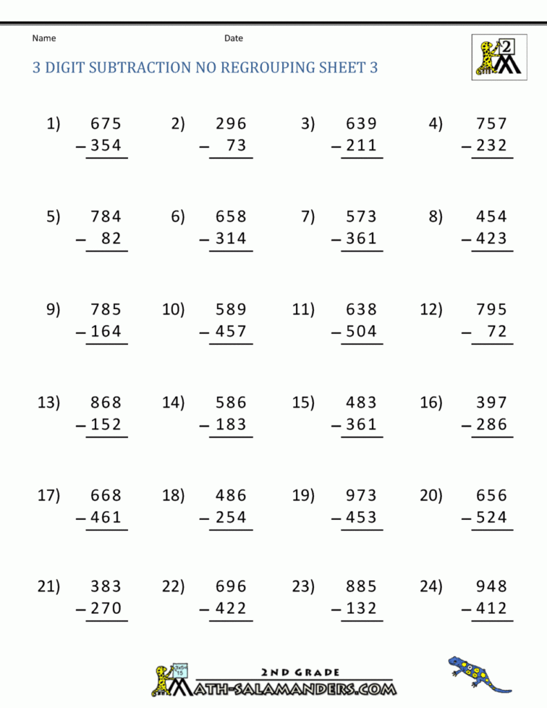 Subtracting Three Digit Numbers Without Regrouping Worksheets – A Subtraction Phone numbers Worksheet is actually a useful device for training and testing your child’s subtraction facts. Subtraction worksheets need to target the student’s subtraction details rather than about the link between addition and subtraction. Here are some tips you should keep in mind if you want to use these worksheets with your child. Work with a worksheet that can help your child comprehend the concept of each and every number along with the method employed to perform subtraction. Subtracting Three Digit Numbers Without Regrouping Worksheets.
