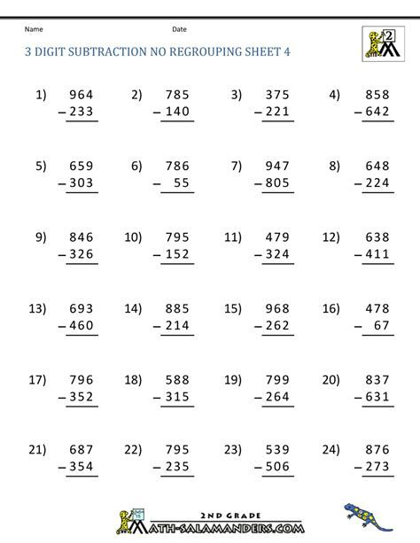 Gallery of Subtracting Two Or Three Numbers Worksheets