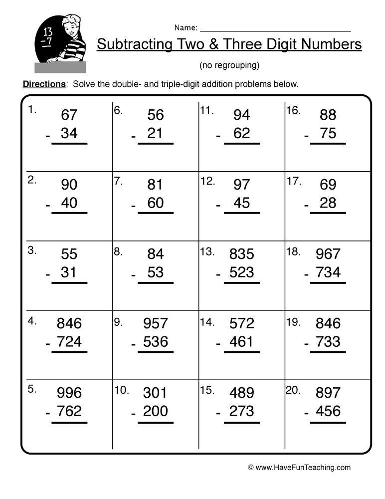 Double Triple Digit Subtraction No Regrouping Worksheet Have Fun Teaching