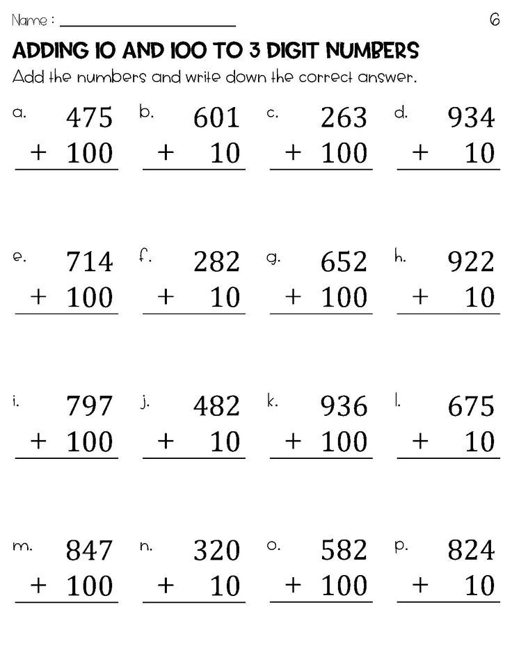 Adding 10 And 100 To 3 Digit Numbers Worksheets In 2022 Number