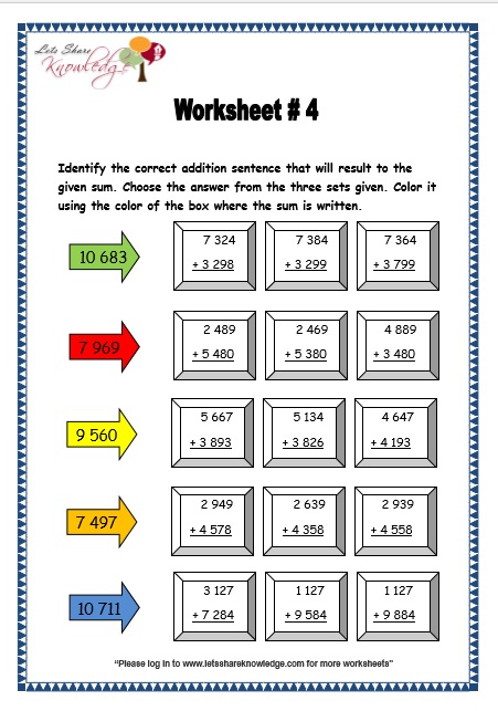 Grade 3 Maths Worksheets Addition 3 2 Addition Of 4 Digit Numbers