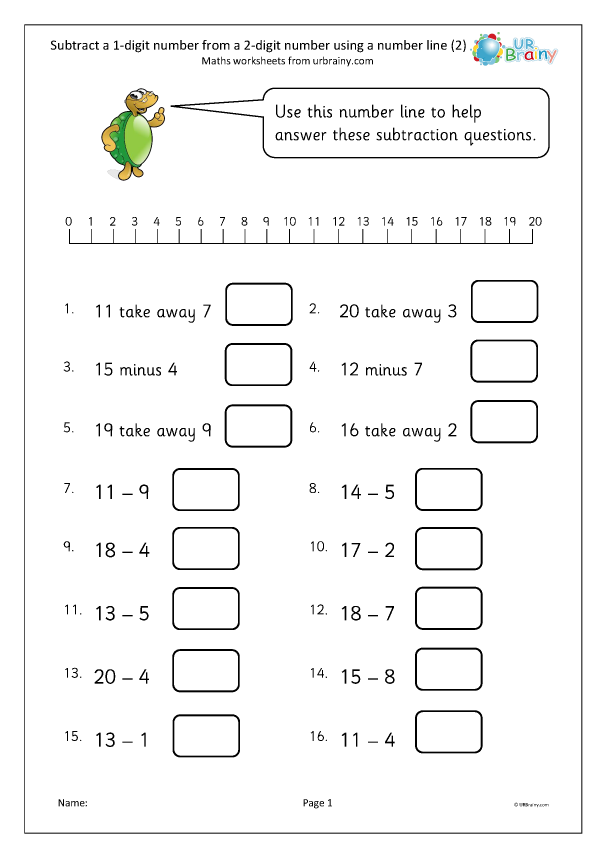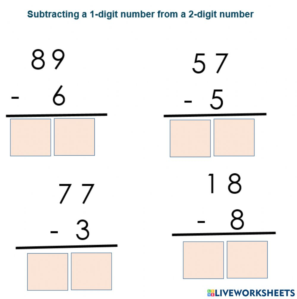 Subtracting A 1 digit Number From A 2 digit Number Worksheet