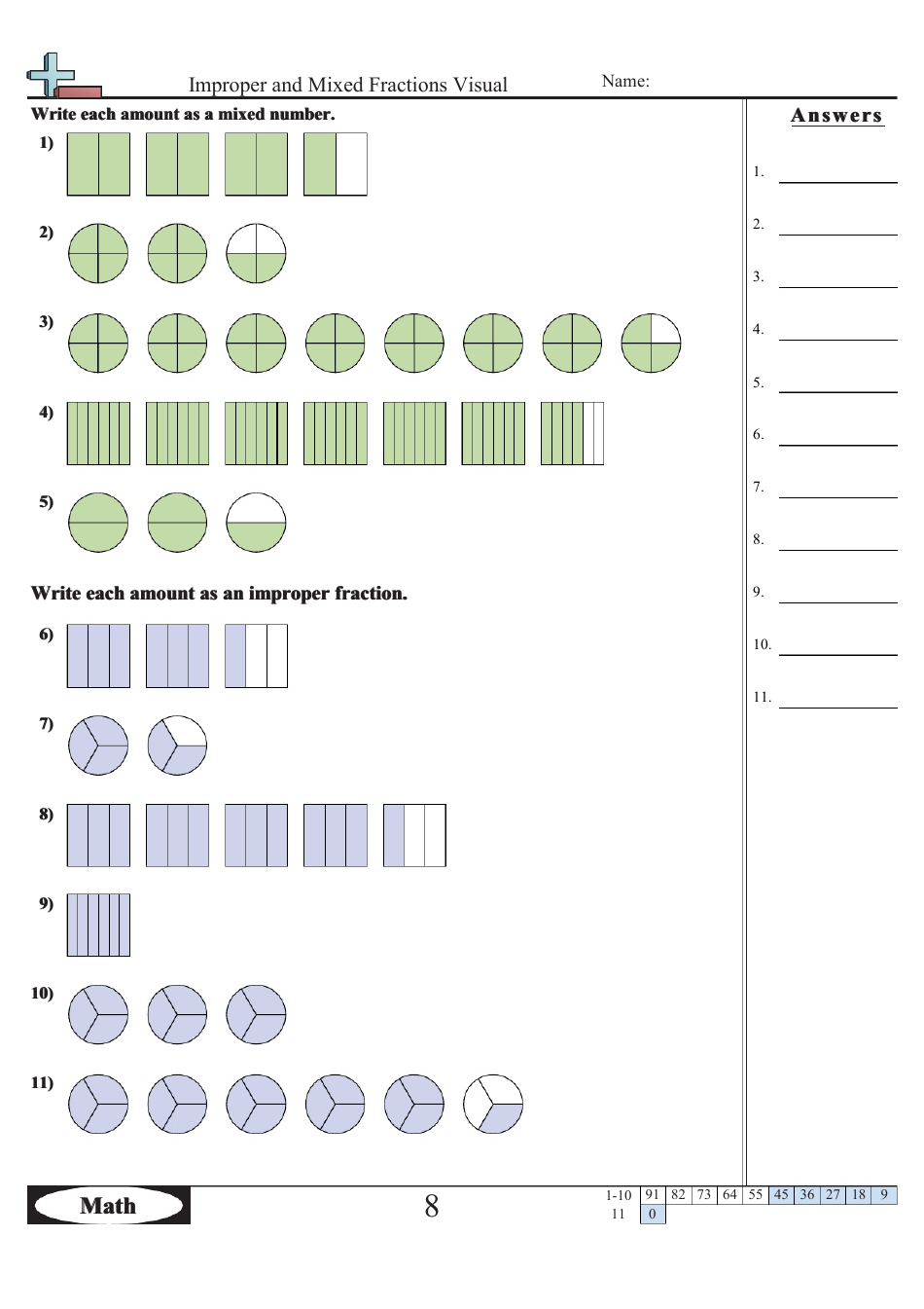 Mixed Numbers And Improper Fraction Worksheets With Pictures