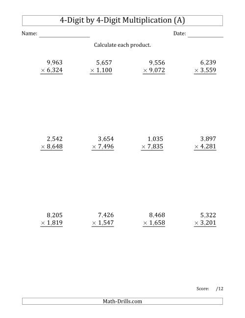 Multiplying 4 Digit By 4 Digit Numbers With Comma Separated Thousands A