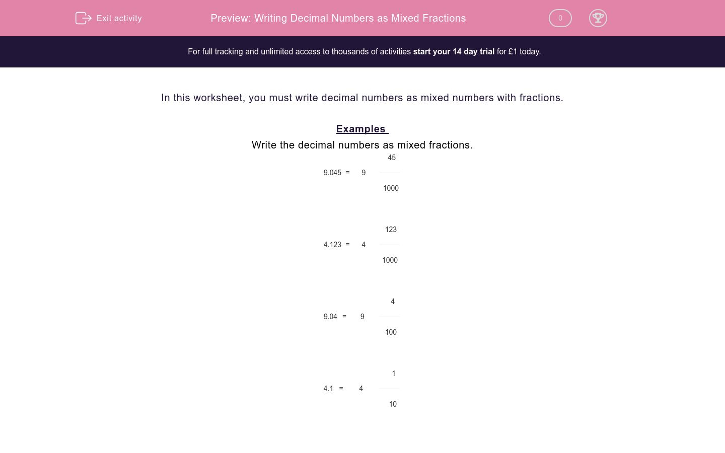 Writing Decimal Numbers As Mixed Fractions Worksheet EdPlace is a free printable for you. This printable was uploaded at October 04, 2022 by tamble in Fraction.