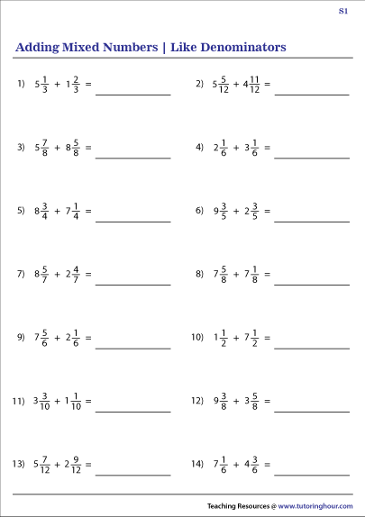 Worksheets Adding Mixed Numbers With Like Denominators – Superior inclusion drills are great ways to present college students to algebra ideas. These drills have choices for one-minute, 3-min, and several-minute drills with custom ranges of fifteen to hundred difficulties. Additionally, the drills come in a side to side file format, with figures from to 99. These drills can be personalized to each student’s ability level. That is the best part. Here are a few extra sophisticated addition drills: